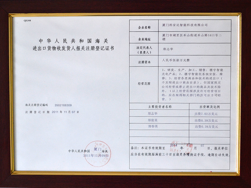 廈門科安達智能科技有限公司,是一家擁有完全自主開發能力和生產能力的知名高新技術企業。“KAD”是科安達公司在國內注冊的全球性品牌,公司已經通過ISO9001:2008國際質量體系認證和3C等強制性認證,并成為國內外很多知名安防產品的核心合作伙伴 詳情>>